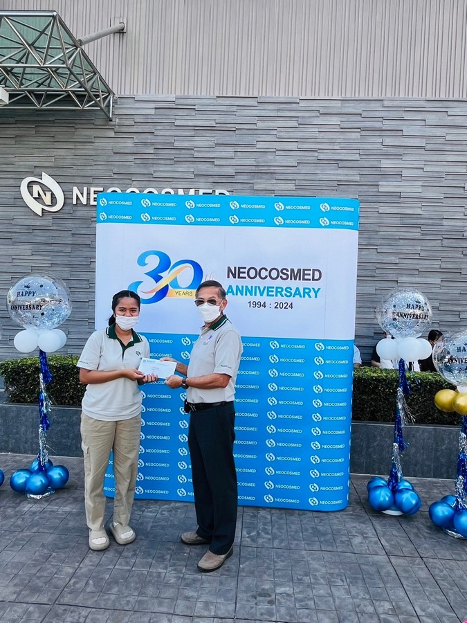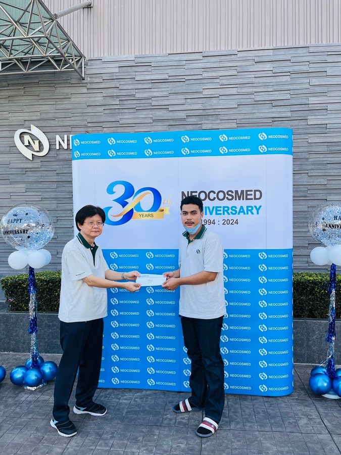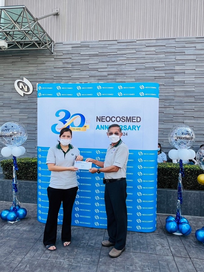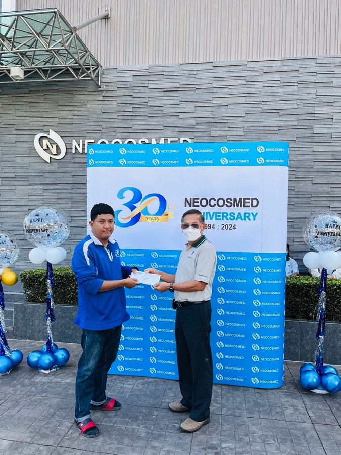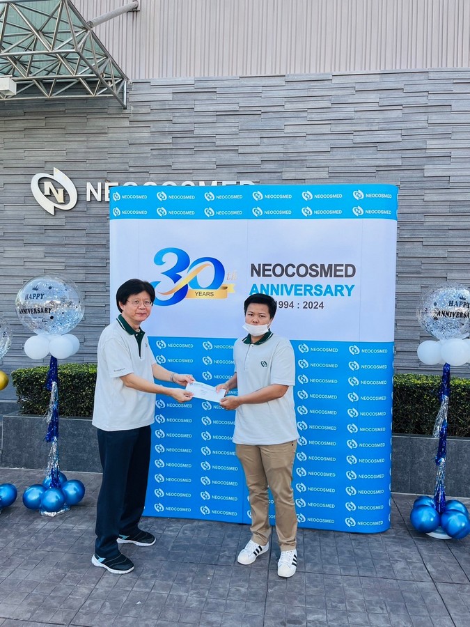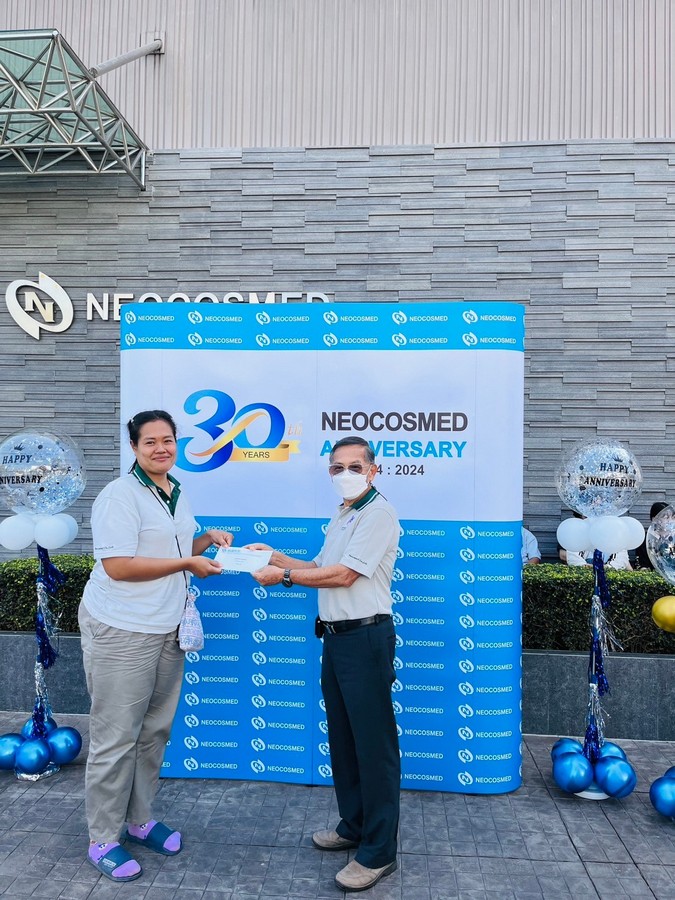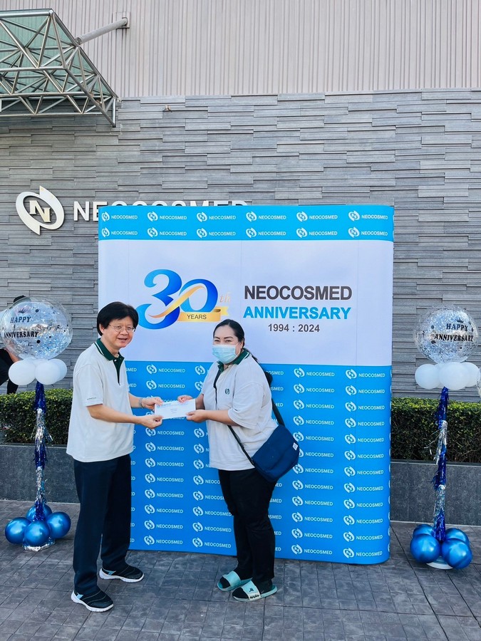 บริษัท นีโอคอสเมด จำกัด จัดกิจกรรมปีใหม่ 2567 โดยมีกิจกรรมช่วงเช้า จับฉลากแจกเงินรางวัล มากกว่า 100 รางวัล ณ บริษัท นีโอคอสเมด จำกัด อำเภอลาดหลุมแก้ว จังหวัดปทุมธานี (2 มกราคม 2567)