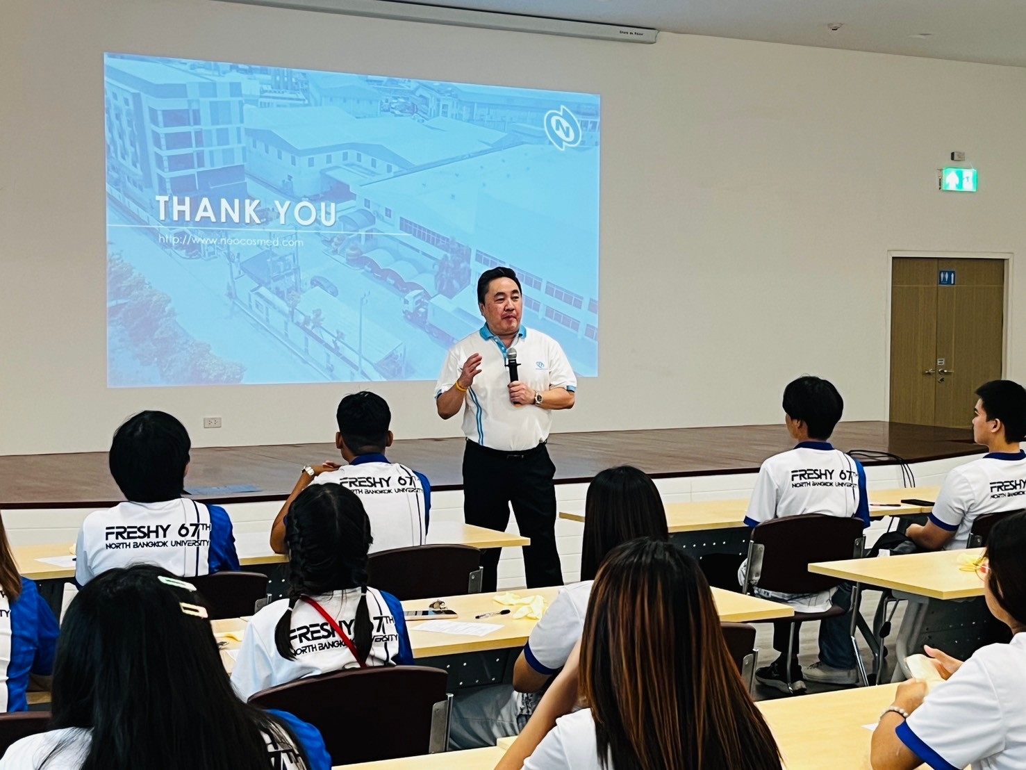 บริษัท นีโอคอสเมด จำกัด ให้การต้อนรับ คณะอาจารย์และนักศึกษา สาขาวิชาการจัดการโลจิสติกส์และโซ่อุปทาน คณะบริหารธุรกิจ มหาวิทยาลัยนอร์ทกรุงเทพ เข้าเยี่ยมชมกระบวนการผลิตเครื่องสำอาง, การควบคุมคุณภาพ ตลอดจนการบริหารจัดการคลังสินค้า ณ บริษัท นีโอคอสเมด จำกัด อำเภอลาดหลุมแก้ว จังหวัดปทุมธานี (26 กันยายน 2567)