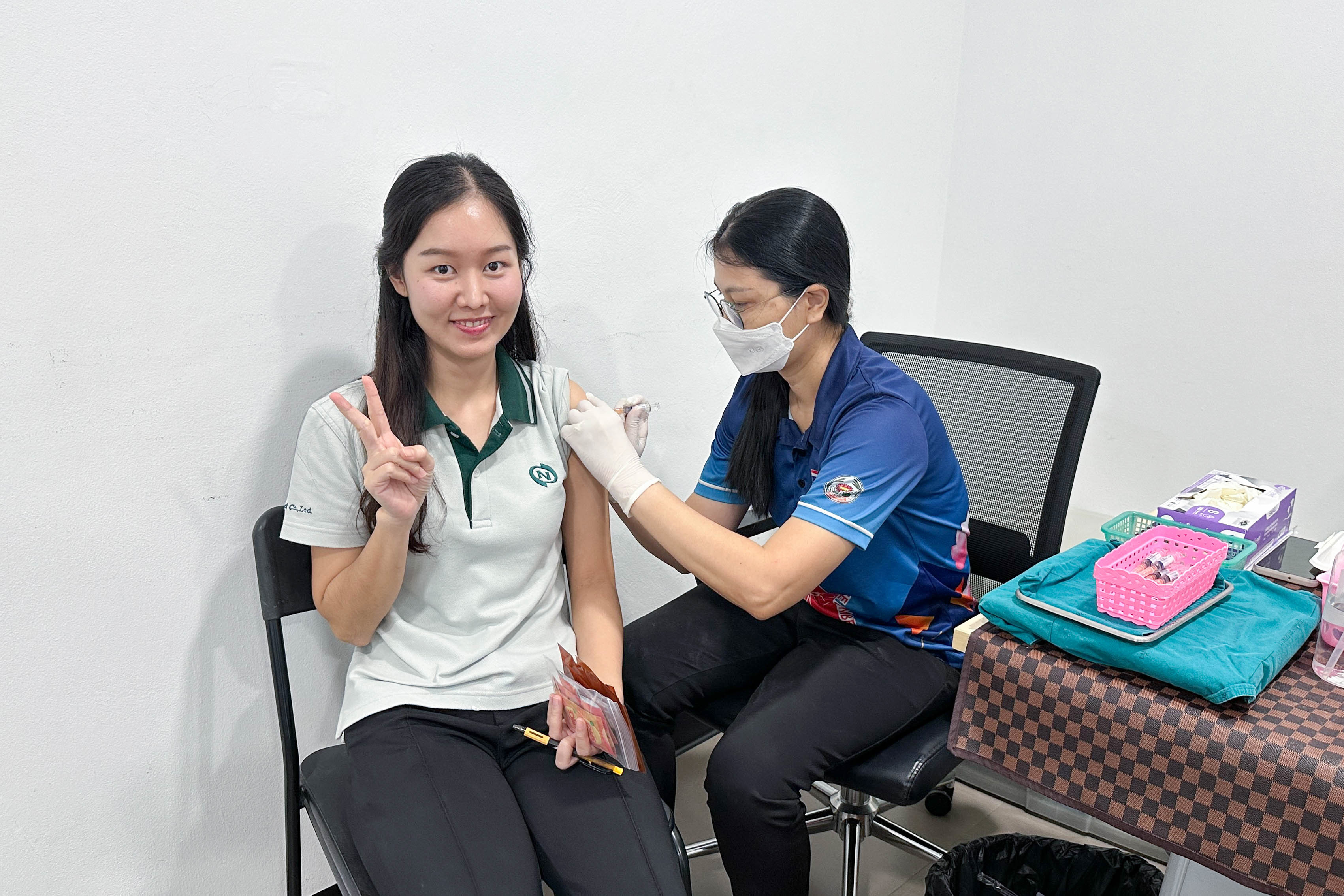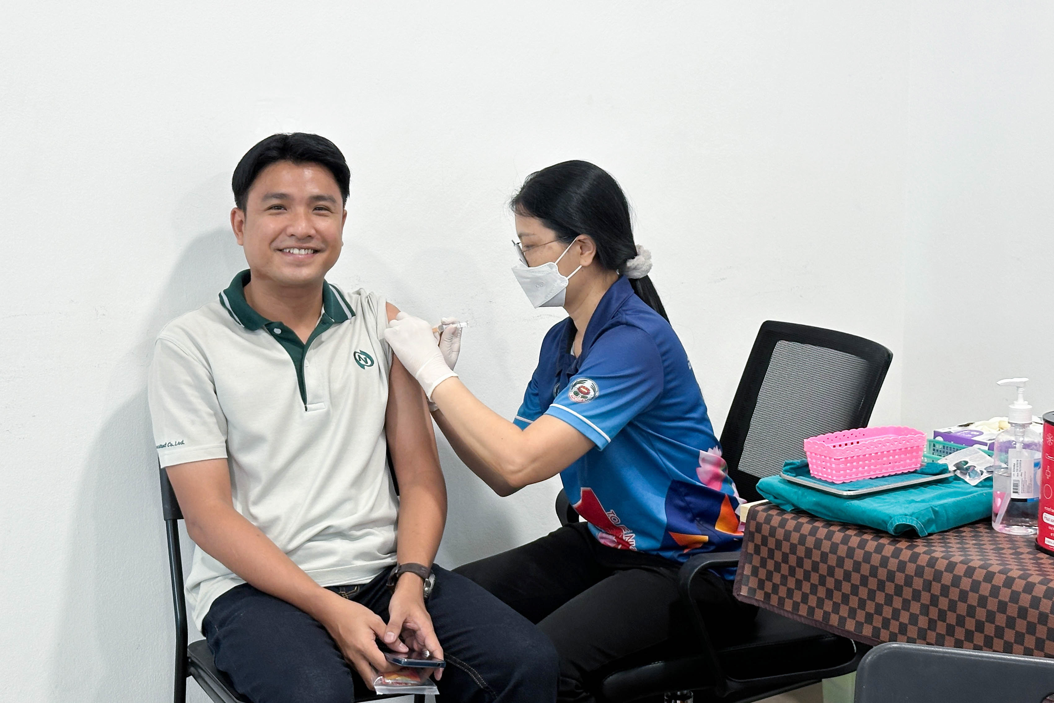 บริษัท นีโอคอสเมด จำกัด ร่วมกับทีมแพทย์และพยาบาลจากโรงพยาบาลลาดหลุมแก้ว ได้จัดกิจกรรมฉีดวัคซีนไข้หวัดใหญ่ฟรีให้แก่พนักงานทุกท่าน เพื่อสร้างเกราะป้องกันสุขภาพที่แข็งแรง ลดความเสี่ยงจากการเจ็บป่วย ซึ่งสะท้อนถึงความห่วงใยที่บริษัทมีต่อพนักงานทุกคน ณ บริษัท นีโอคอสเมด จำกัด (15 กันยายน 2568)